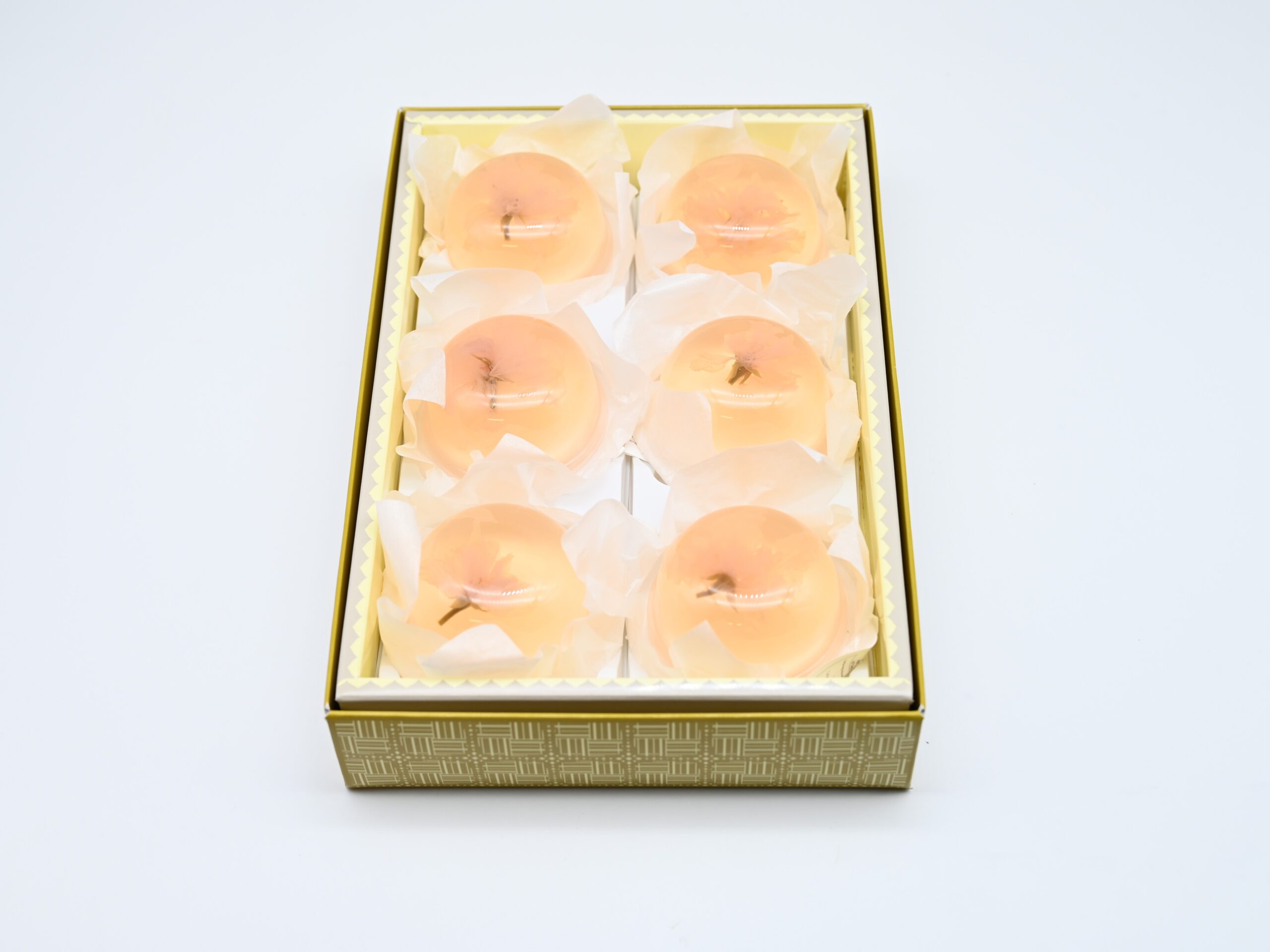 A delicately cherry-blossom-scented jelly topped with a single floating sakura blossom.